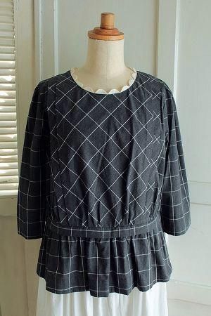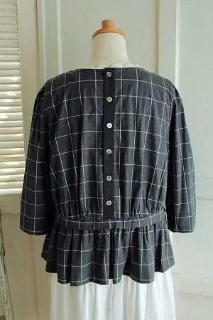 nesessaire ウィンドーペーンチェックスカラップブラウス