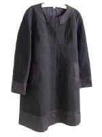 color チャコール、素材 コットン100%、(襟部分)コットン75%、シルク25%、(見返し部分)コットン100%、made in Japan、size F、着丈57cm、バスト102cm、袖丈44cm、肩幅38cm