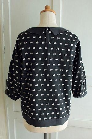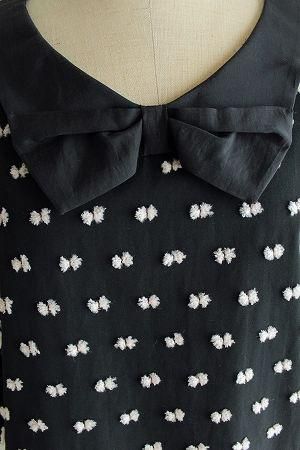 color ブラック、(リボン)ピンク、素材 ポリエステル63%、コットン26%、ウール9%、ナイロン2%、(別布)キュプラ56%、コットン44%、made in China、size 38、着丈57cm、バスト95cm、袖丈40cm、肩幅38cm、※ストライプの織りとなっております。