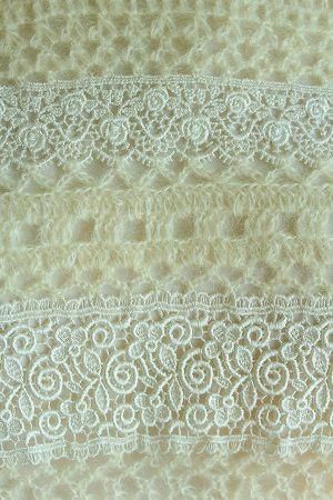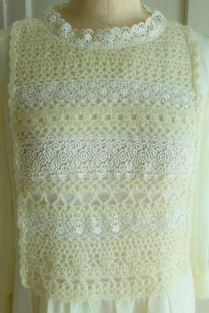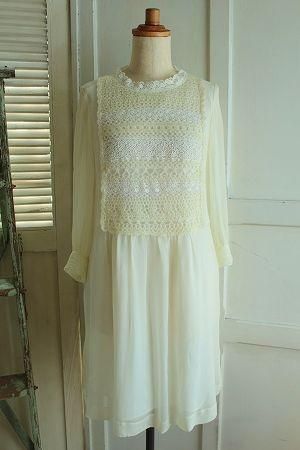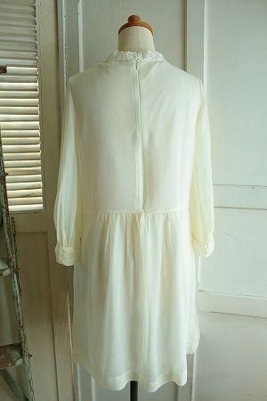 color アイボリー、素材 シルク100%、(ニット部分)ナイロン40%、キッドモヘア32%、ウール28%、(レース部分)レーヨン100%、(裏)コットン100%、(裏地)ポリエステル100%、made in China、size 38、着丈86cm、バスト92cm、袖丈48cm、肩幅38cm