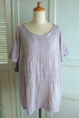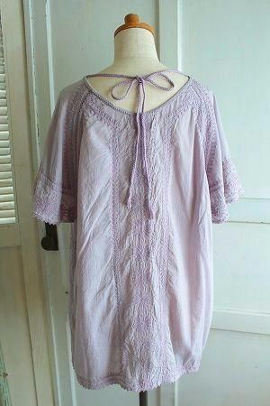 color パープル、素材 cotton100%、made in India、size M、着丈72cm、バスト118cm、袖丈26cm、肩幅38cm、※裏地は付いておりません。
