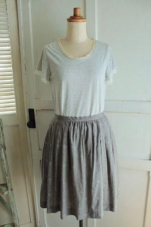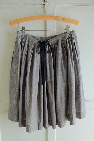 color ブラウン(グレーに近いお色です)、素材 コットン58%、レーヨン20%、リヨセル13cm、(裏地)ポリエステル100%、made in Japan、size 38、着丈54cm、ウエスト74cm〜、ヒップ124cm、※ウエストのリボンをきゅっと絞ってギャザーとウエストサイズの調節が可能です。