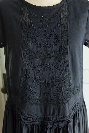 フロントには繊細なレースやお花の刺繍、カットワーク刺繍が、