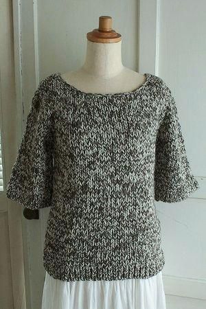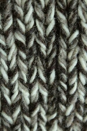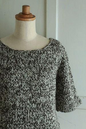 3色の毛糸をミックスしてざっくりと編み上げられた