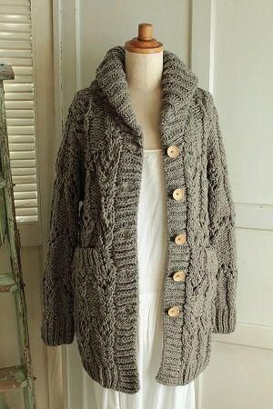 素朴なざっくり編みが素敵なロングカーディガンです。