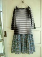 inaボーダー切り替え花柄ワンピースBK×IV