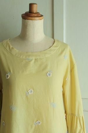 color イエロー、(スカート)グレー、(刺繍)アイボリー、ブルー