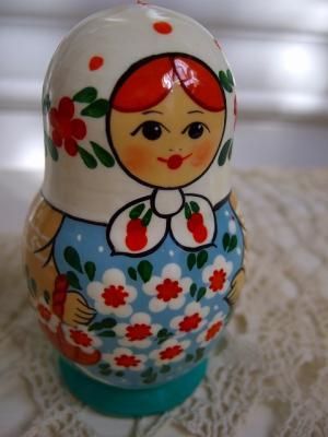 素材 木製、  サイズ 直径16.5cm×9cm(一番大きいマト)、入れ子5コセット。 ロシア製。