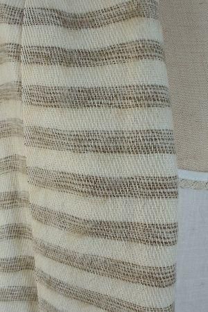 color アイボリー×ブラウン、(フリンジ)チャコール 素材 アクリル70%、コットン30% (フリンジ)ウール100% made in Nepal size (幅)65cm×(長さ)180cm(+フリンジ15cm)
