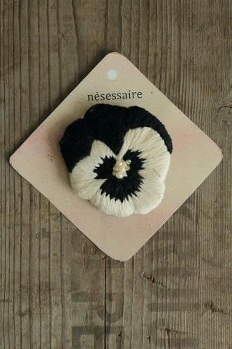 nesessaire パンジーハンド刺繍コサージュBK
