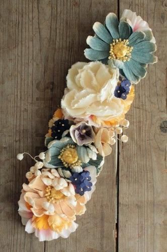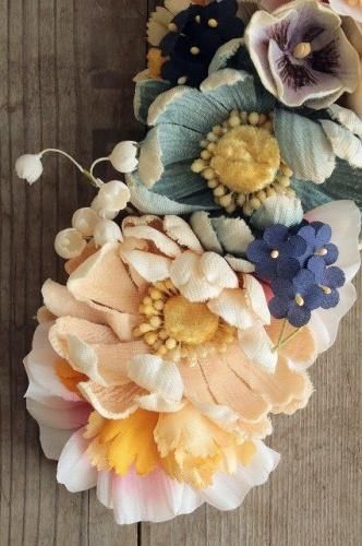 目を惹くアトリエ染花さんのお花のコサージュが魅力的です。