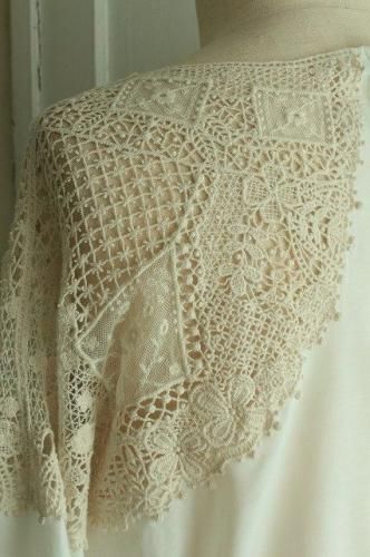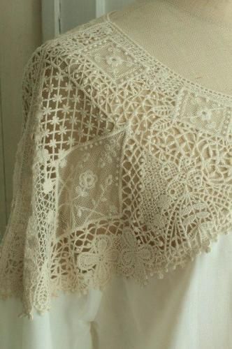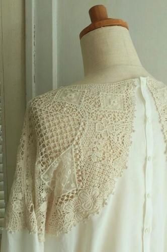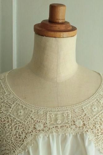 前後の肩周りに贅沢に施された繊細なレースモチーフが魅力的です。
