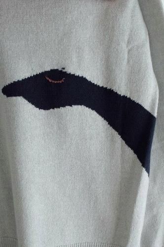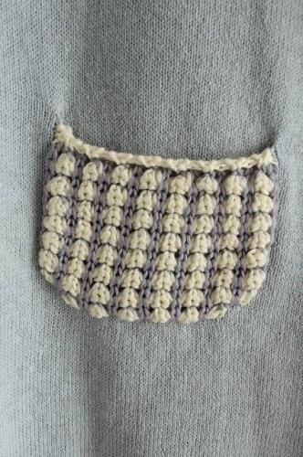 背中にはちょうちょとヤギ子の飾り編みが施されています。