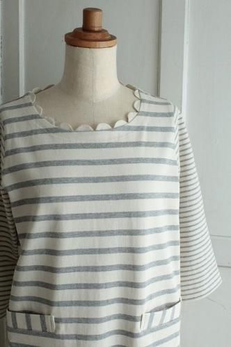 ピッチの異なるボーダーの短め袖に