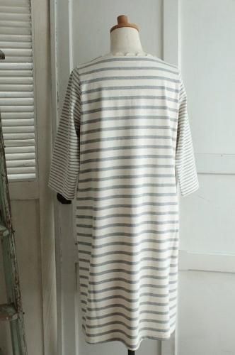 生成とグレーのボーダー柄が目を惹くしっかり厚手のコットン素材。