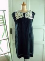 nesessaireレース襟リネンタックワンピースBK