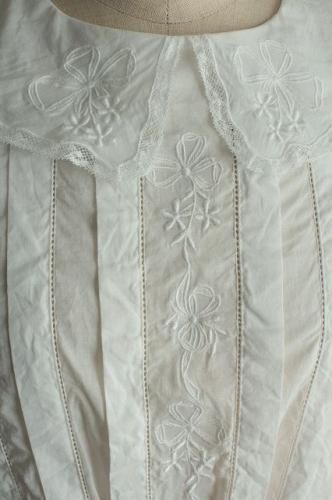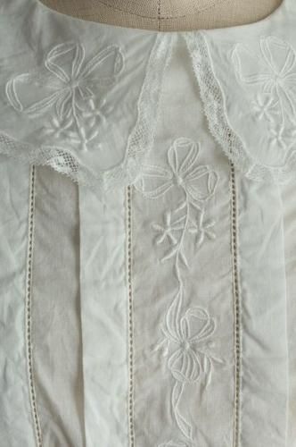 フロントには太めのタックと繊細なリボン刺繍が施されています。