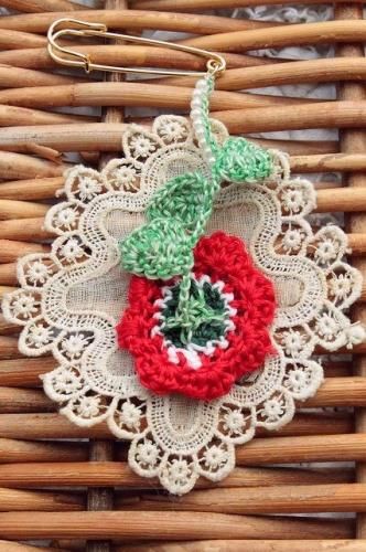 繊細なかぎ針編みの真っ赤なアネモネ。