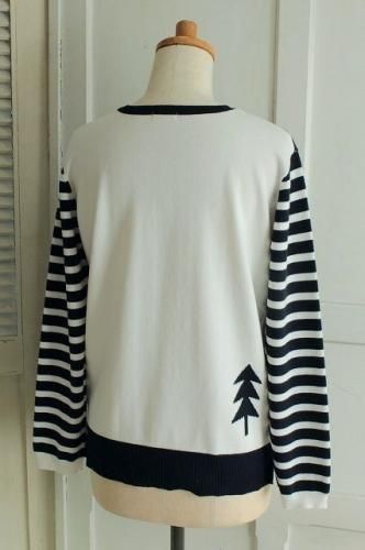 フロントはドット柄・袖はボーダー。