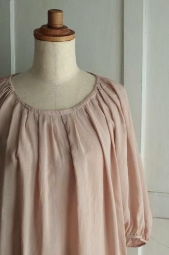 首周りと裾にはタック、袖口には細かいギャザーが施され