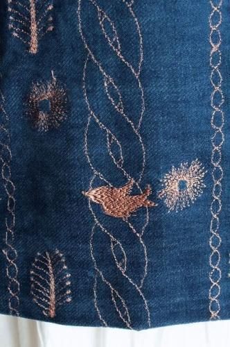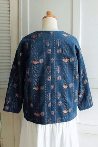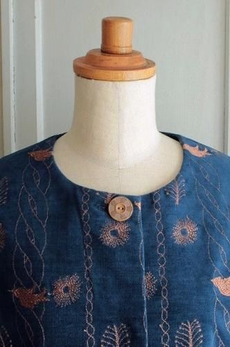 全体に施された葉っぱや小鳥の刺繍が魅力的です。