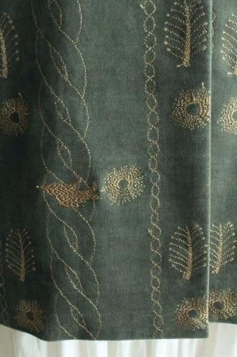 全体に施された葉っぱや小鳥の刺繍が魅力的です。
