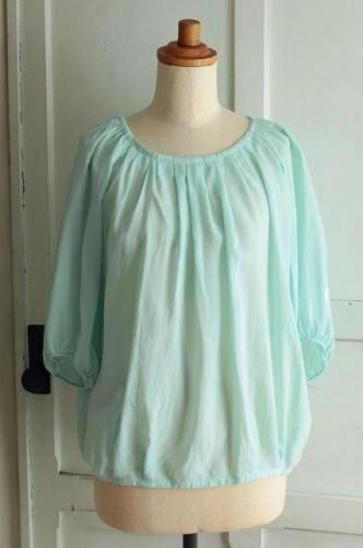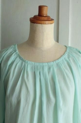 首周りと裾にはタック、袖口には細かいギャザーが施され