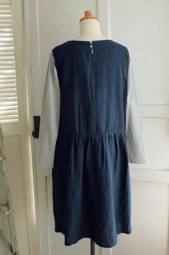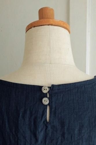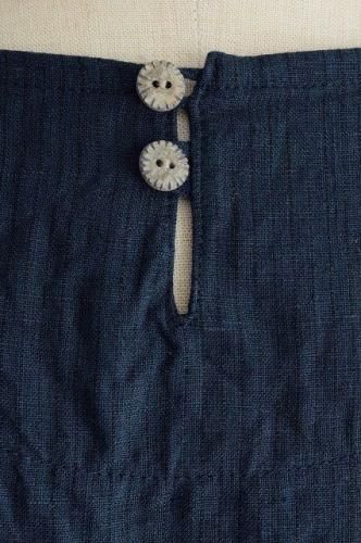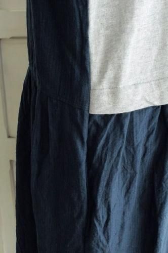 トップ後身頃とスカートは洗いをかけたピンストライプのリネン生地の