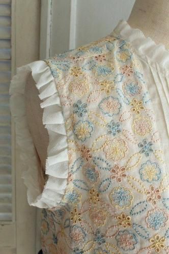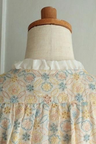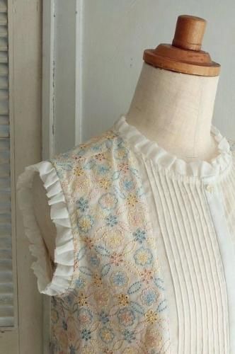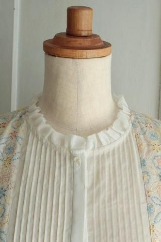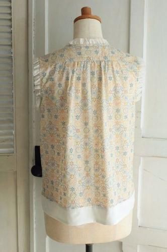 首周りと袖口の切りっぱなしのラフなフリルがアクセント。