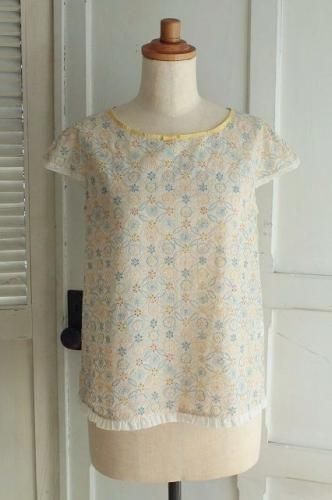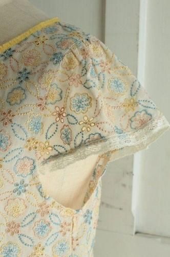 袖口の繊細なレース、裾の控えめフリルがアクセント。