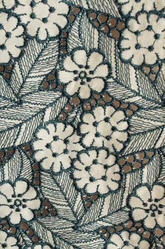 フロントに施されたイベリスのお花と葉っぱのカットワーク刺繍が魅力的です。