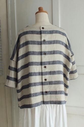 color ネイビー×ナチュラル 素材 リネン100% made in Japan size 38 着丈57cm、バスト128cm、袖丈42cm(切替しより20cm)、肩幅38cm