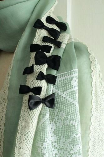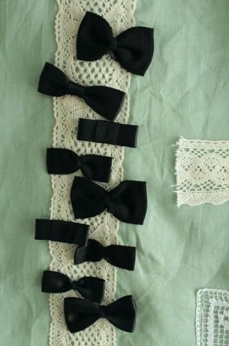 9つ並んだ不揃いの黒いリボンがアクセント。