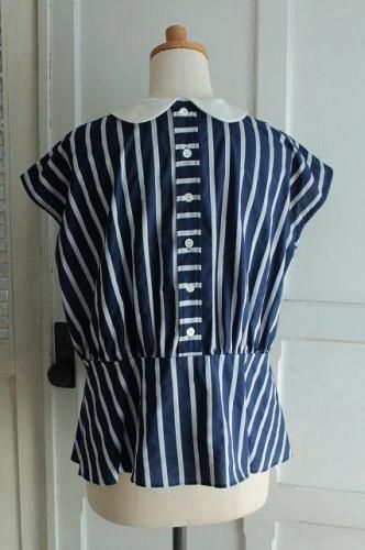 ネイビー×オフの目を惹くボーダー・ストライプが魅力的です。