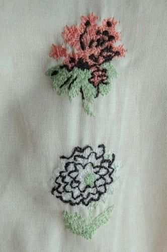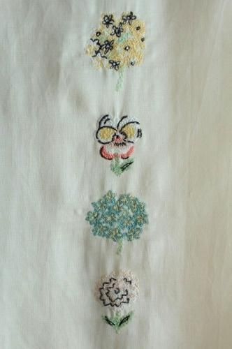 フロントに8つ並んだパンジーやあじさいの繊細なお花の刺繍が魅力的です。