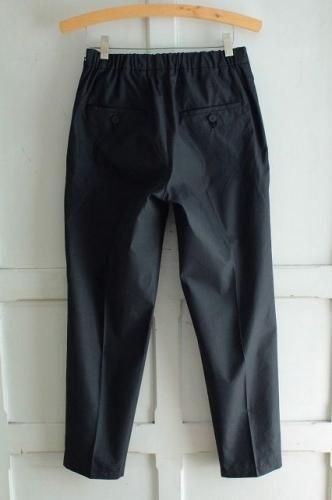 ウエストのタックで腰周りはゆったり、裾に向かって次第に細くなっていく