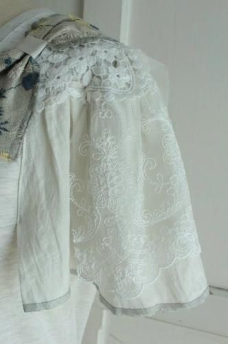ふんわりボリュームのあるリネン生地の袖、繊細なレースが施されています。
