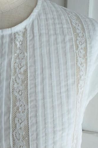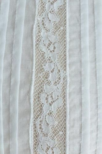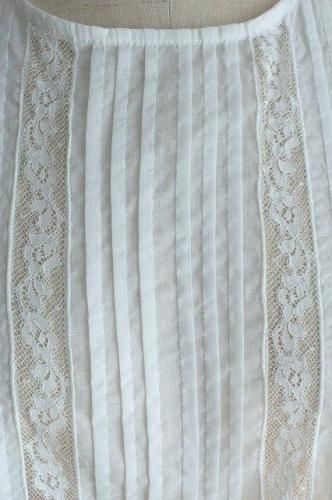 フロントには細かいタックとアンティーク風の繊細なレースが贅沢に施されています。