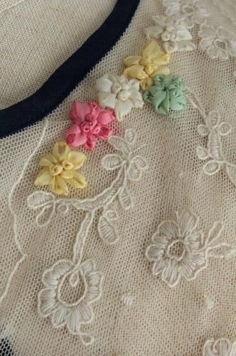 きれいなパステルカラーのお花のリボン刺繍が魅力的です。