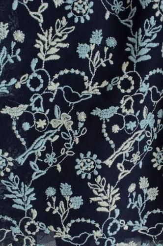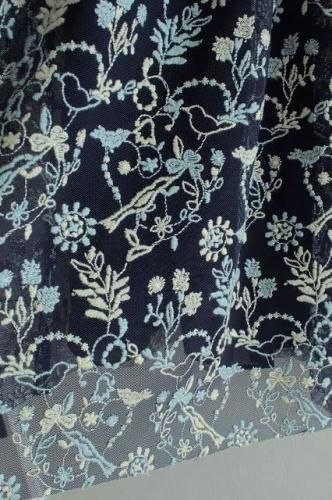 繊細なチュールにブルーとオフホワイトの2色の糸で
