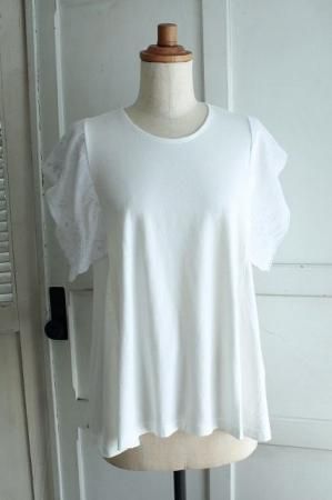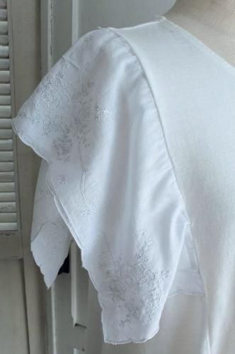 繊細なスワトウ刺繍ハンカチのひらひら袖が魅力的です。