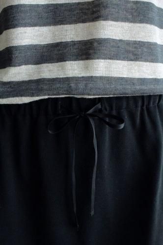 ウエストに施されたリボンをきゅっと結んでギャザーを寄せて