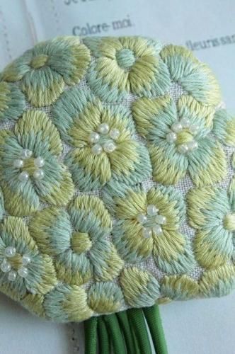 繊細なあじさいのハンド刺繍とビーズ刺繍が魅力的です。