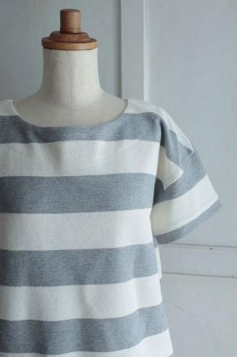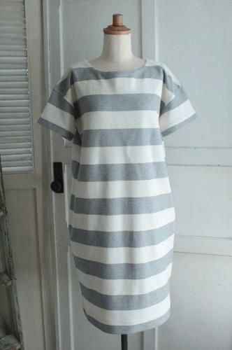 color アイボリー×グレー 素材 コットン100% (別布)コットン100% made in Japan size 38 着丈92cm、バスト102cm、袖丈23cm(切替しより12cm)、肩幅38cm ※裏地は付いておりません。