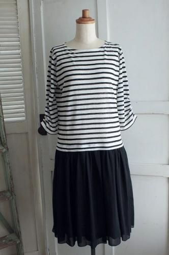 スカート部分は薄手のコットンシフォン生地の異素材の組み合わせ。