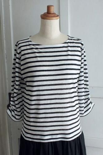 トップはボーダー柄のさらっとした肌触りの薄手のリネンカットソー素材。