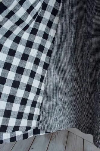 千鳥格子柄の生地とギンガムチェック柄の2枚の生地はサイドで縫い留まっています。