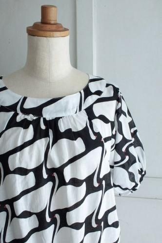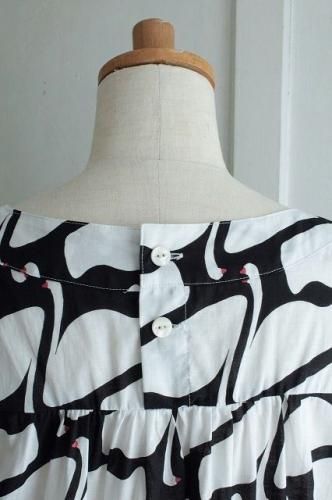 首周り・袖口・裾・背中の切替しからギャザーが施され