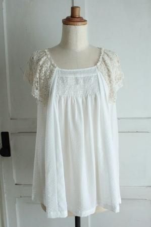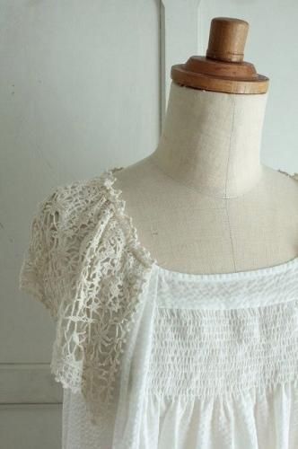爽やかなノースリーブに幅広の繊細なレースの襟・袖が魅力的です。