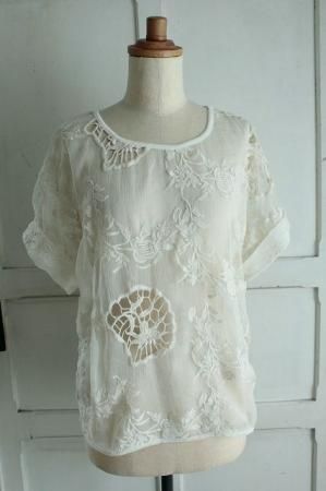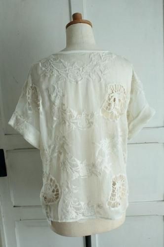 全体に施された繊細なお花の刺繍とカットワークが魅力的です。